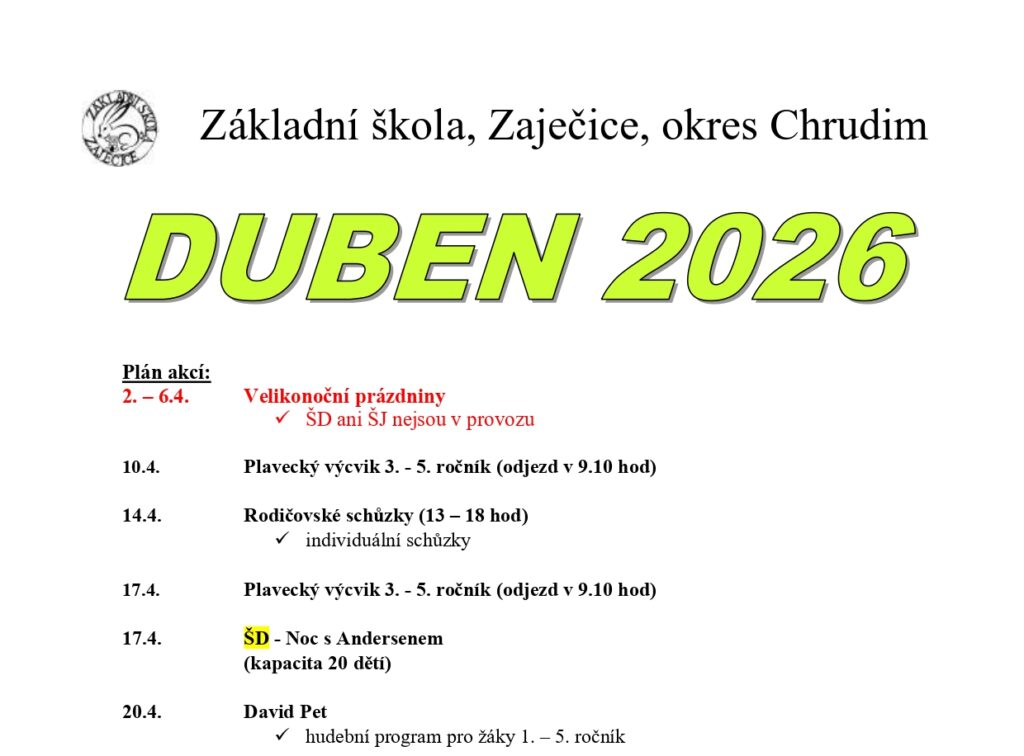 Plán na duben