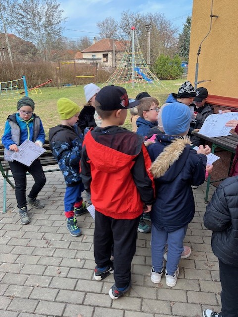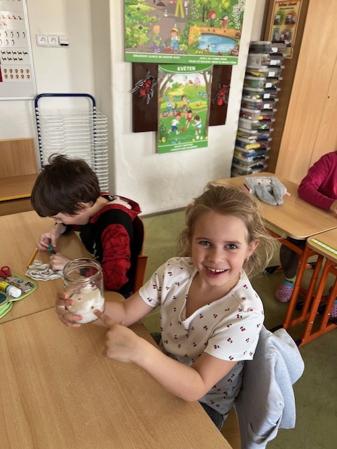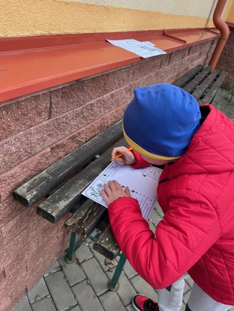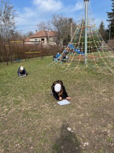 Po společných aktivitách ve třídě jsme se přesunuli ven na školní zahradu, kde probíhala venkovní výuka. Vzhledem k tomu, že jsme si připomněli první jarní den, zaměřili jsme se právě na téma jara. Děti hledaly první jarní kytičky, poznávaly přírodniny, objevovaly hnízdečka, pracovaly s kartičkami s příklady, opisovaly slova a také si přečetly jarní básničku. Výuka byla hravá a přirozeně propojovala poznávání s pohybem.